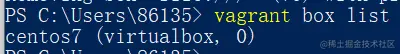 通过该命令 vagrant box list我们可以查看刚才安装的 CentOS Box: