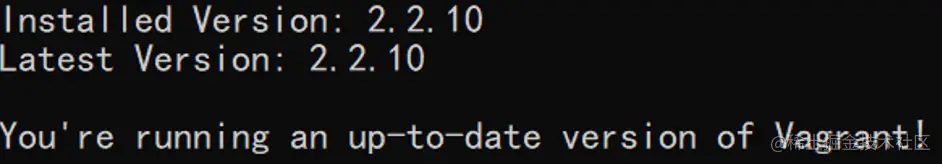 Vagrant 安装成功后,在命令行输入 vagrant version,就可以看到如下输出: