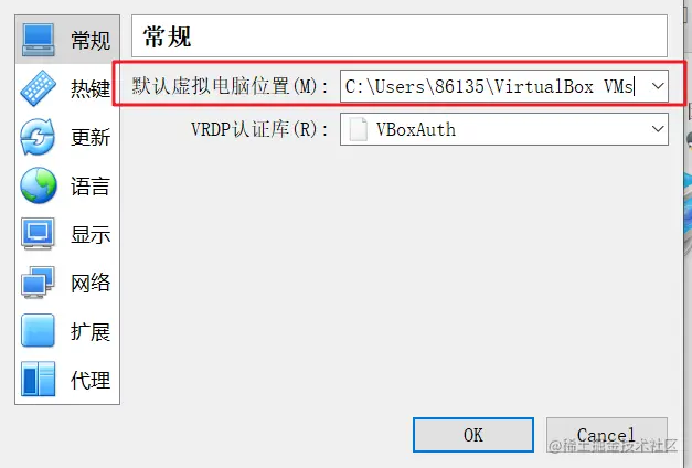 进入“常规”设置选项卡,在此可配置虚拟电脑位置: