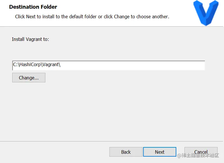 安装过程中,我们可以选择 Vagrant 的安装路径:
