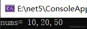 Console.WriteLine($"nums= {string.Join(",",nums)}");