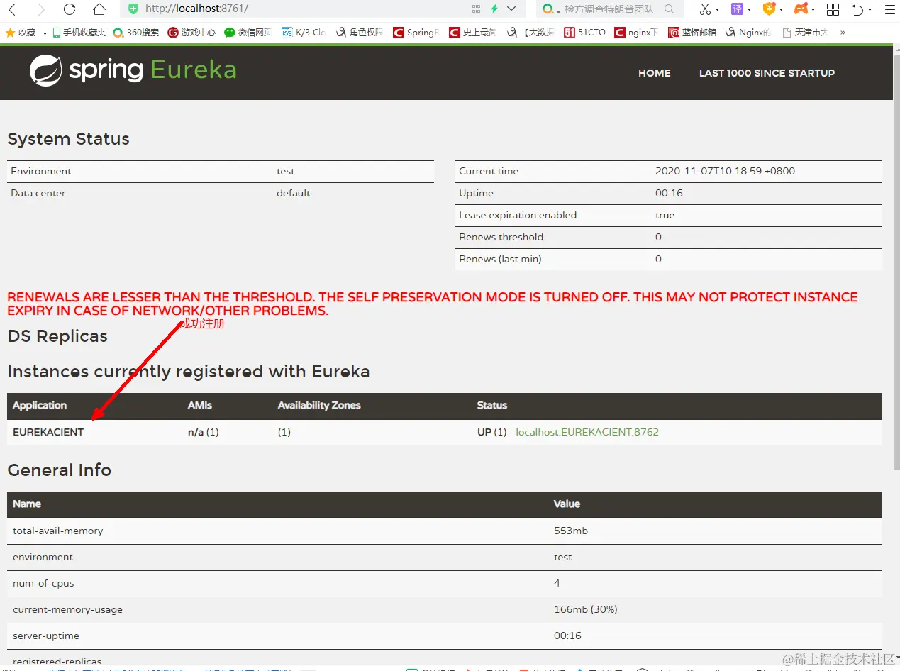 运行main方法启动EUREKASERVER,然后访问下面地址