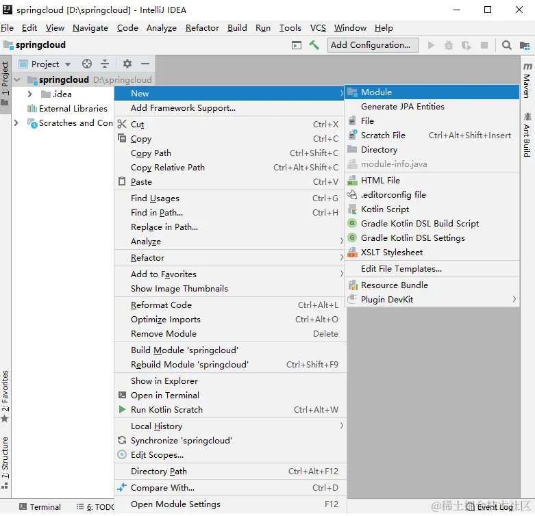 SpringCloud的案例比较复杂,很多案例都是相互的,以后编写的文档也会基于这个文档进行讲解。为了方便项目管理我们搭建一个空项目,以后的所有项目(module)案例都放到这个空项目里面。