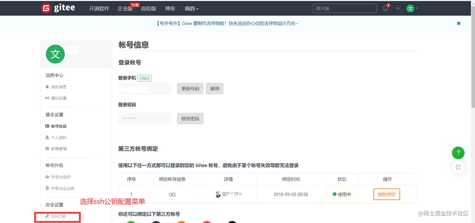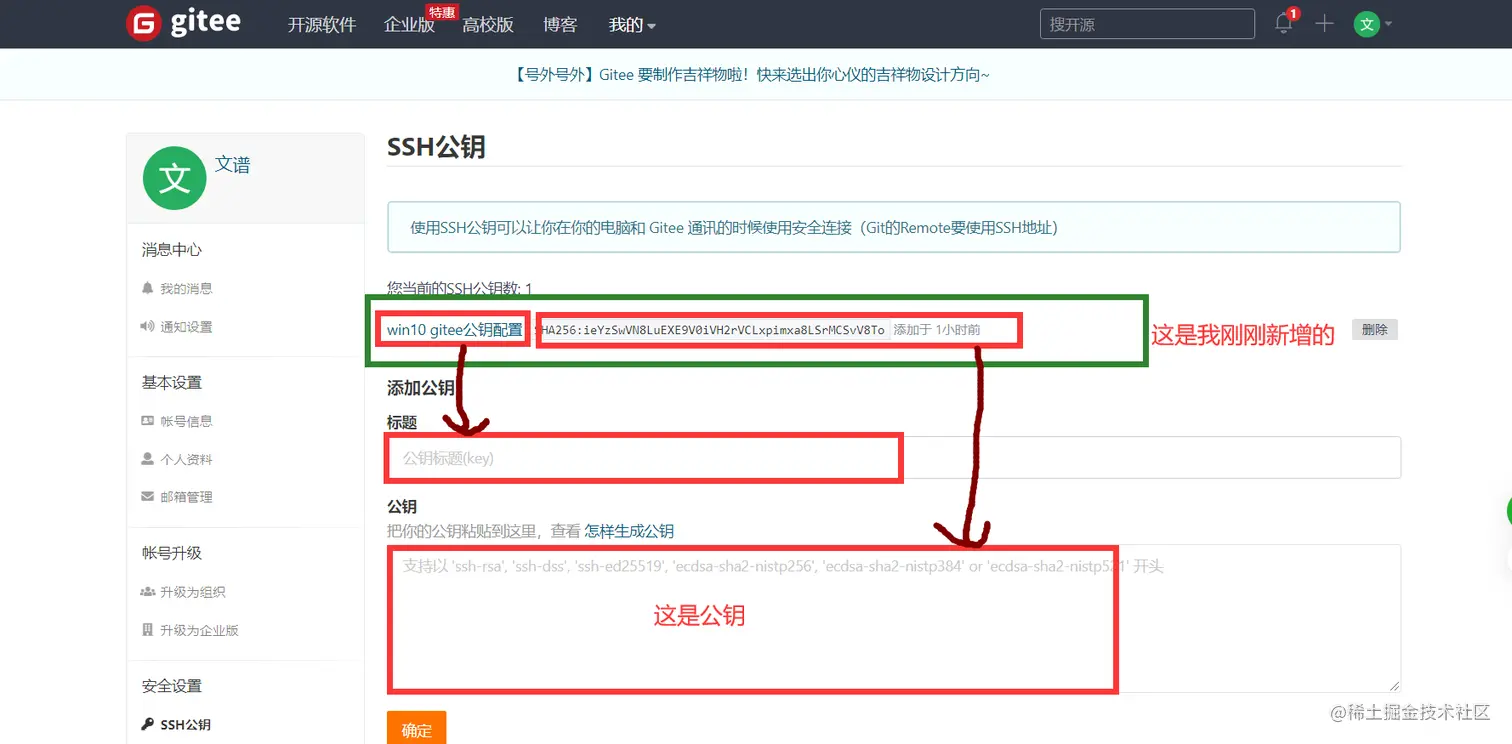 公钥私钥的配置在官网也有:gitee.com/help/articl…