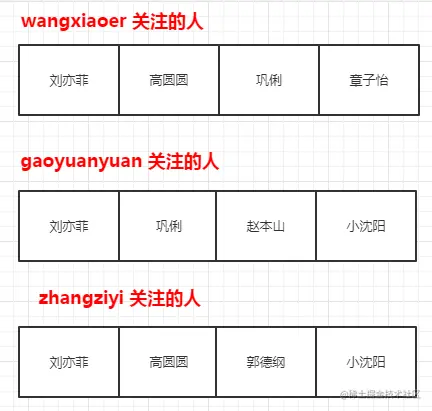 获取 wangxiaoer 关注的人:SMEMBERS wangxiaoer