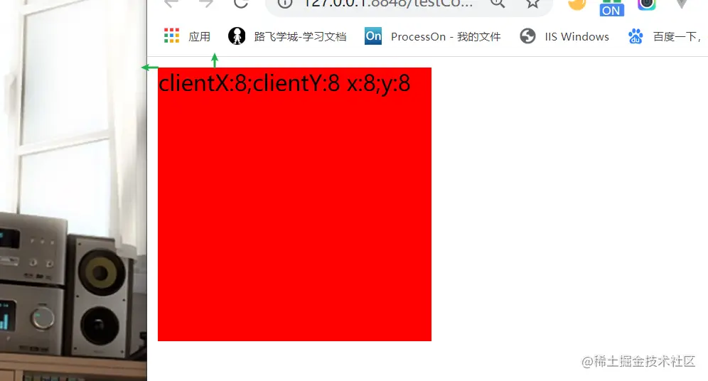 相对于浏览器(浏览器的有效区域)的x轴和y轴的距离。