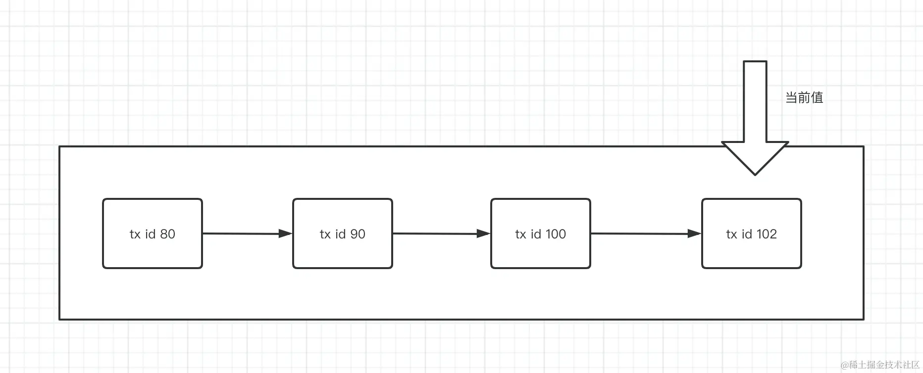 注意,上图中,undo log中事务id的顺序不一定是递增的顺序的。原因是有可能后开启的事务先修改该条记录。而先开启的事务后修改。