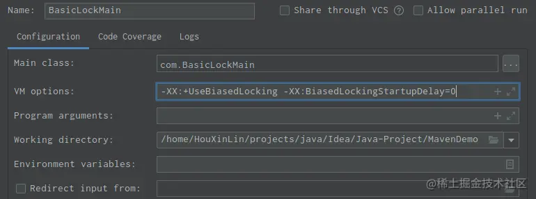 -XX:+UseBiasedLocking -XX:BiasedLockingStartupDelay=0