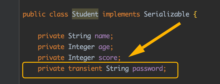 比如在之前定义的Student类中,加入一个密码字段,但是不希望序列化到txt文本,则可以: