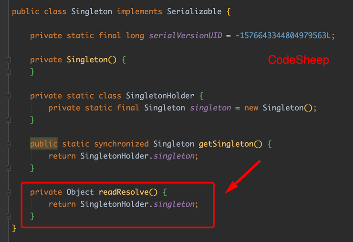 解决办法是:在单例类中手写readResolve()函数,直接返回单例对象,来规避之: