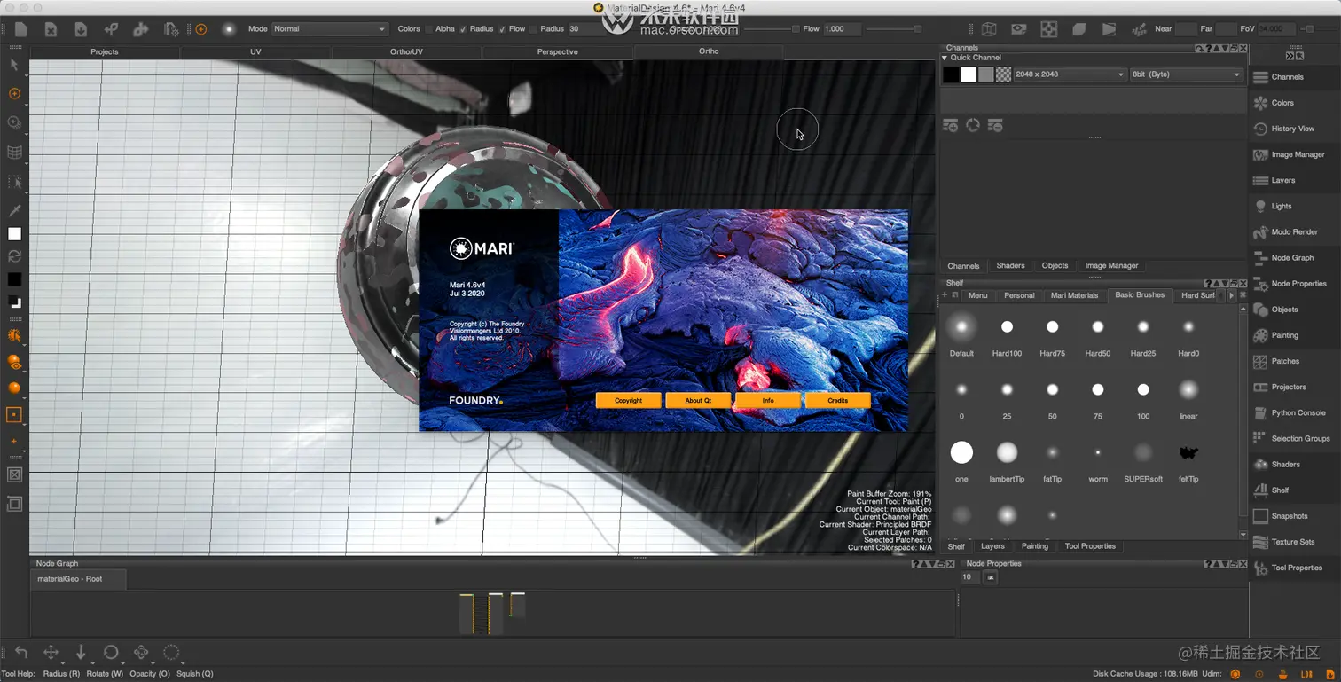 3D纹理贴图制软件The Foundry Mari for Mac i不爱吃鱼的猫 2020-11-07 542 阅读2分钟 The Foundry Mari for Mac是Mac平台上一款能够绘制任何你想要模型的3D纹理贴图制软件,mari4.6 Mac版能够在界面上看到实时的效果情况,节省用户的时间。The Foundry Mari Mac版具有充分的三平面投影的优势,更快的场景设置等优势,最新版本对工作流程进行了全面的增强处理,The Foundry Mari for Mac为用户提供更加直观可视化的界面,The Foundry Mari Mac版具有高分辨率数字3D绘画和纹理的工具和功能,mari4.6 Mac版能够帮助用以更直观快速的方式来完成3D纹理的绘制,实现你的创意和想法。 Mari 4.6 Mac版是一款全新的3D纹理绘制软件,使用为用户提供了完善的无限制3D绘画功能和工具,不管是多复杂的资产,你都可以使用它来进行快速的纹理绘制操作,为用户创建精彩的视觉特效、动画等,随着软件的不断更新发展,可满足对更高分辨率纹理的支持,使用更加自由和灵活。充分发挥你的创意。 无损层堆栈和节点图 Mari的非破坏性图层系统使您可以自由地将涂料与调整层,程序和蒙版混合使用,以构建着色器。无论您是在传统图层堆栈中工作,还是直接在节点图中建立和编辑连接,都可以随意重新排序,添加和删除图层;随时更改混合模式;然后将各层烘烤或弄平。 摄取PBR纹理集 Mari允许艺术家快速导入并将任何一组PBR纹理贴图转换为Mari材质预设。材质提取工具可创建预设,设置控件,并将所有内容加载到Mari架子上以供使用,以使您不断增长材质库。艺术家可以通过Mari轻松摄取数千种PBR纹理集。 复杂的几何处理 Mari可以在不降低速度的情况下针对单个拓扑扩展到超过一百万个多边形,并轻松处理动画几何,Mari可以应对最困难的生产网格。Mari还可以通过UDIM为每个模型支持数千个纹理,每个纹理的最大像素为32K x 32K,因此您可以创建几乎无限细节的超现实资产。