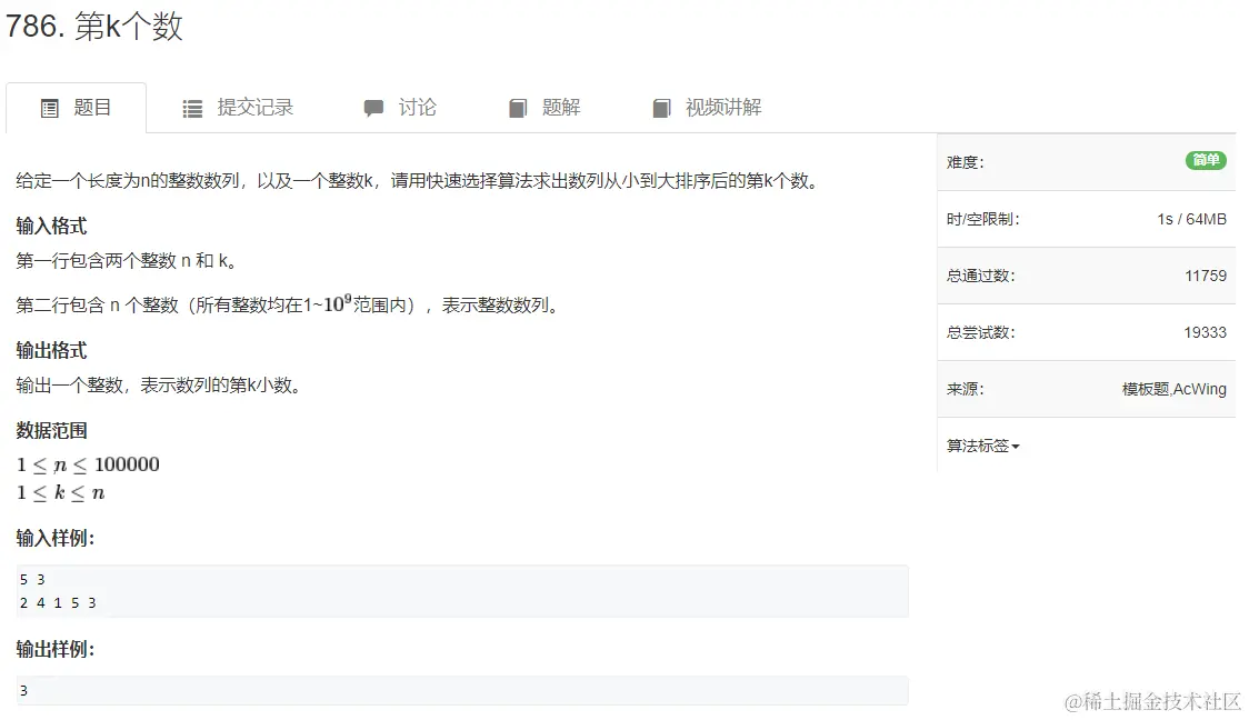 本题的主要思路是利用快排中的分区概念来解决。对于数组arr,我们会在数组中选择一个元素作为pivot,然后进行原地分区,arr[0...p-1],arr[p],arr[p+1...n]。