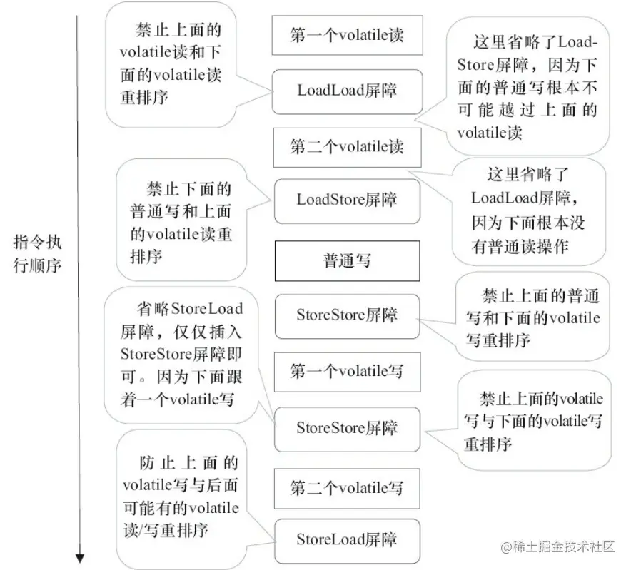 - StoreLoad屏障:StoreLoad屏障前面的写操作不能与后面的所有读操作重排序