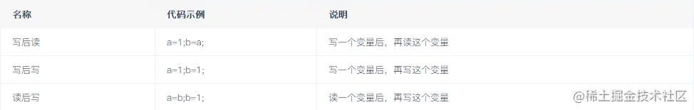 如果两个操作访问同一个变量,且至少一个操作是写操作,此时这两个操作之间就存在数据依赖性。