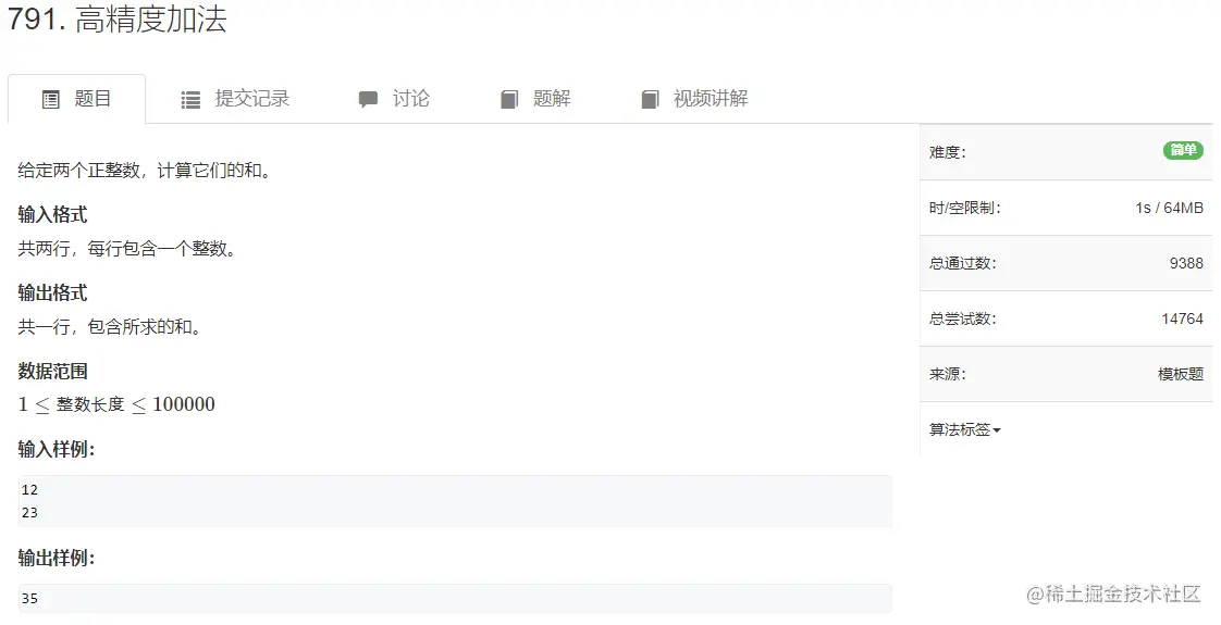 本题不涉及过多的算法知识点,主要思路就是用字符串类型存储数据,然后转换成数组进行十进制加法。