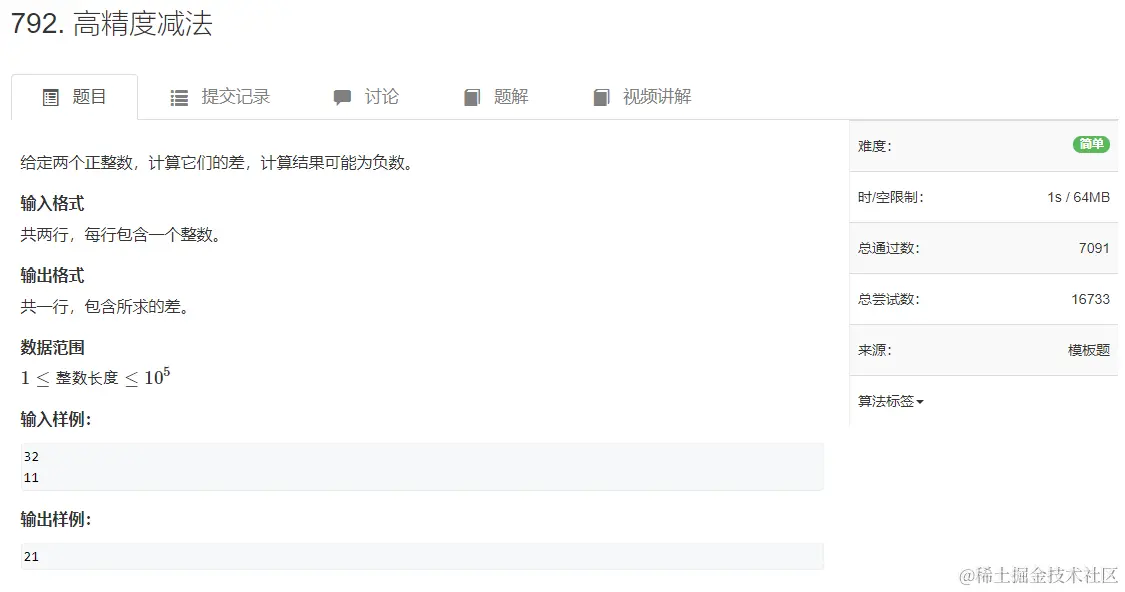 本题与高精度加法类似,主要是考察coding能力,具体看代码即可