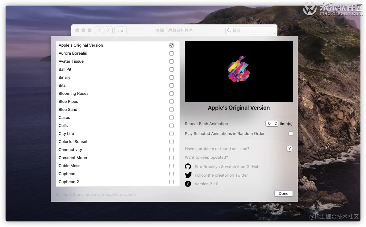 Brooklyn 2.1.0 (60+超炫苹果标志动画屏保) mac 2020-11-07 224 阅读1分钟 Brooklyn 是专为mac用户制作的动态苹果屏保壁纸软件,内置60余款炫酷的苹果标志的变形动画效果。资源占用率低,推荐使用。 Brooklyn 2.1.0 最新版⏬
