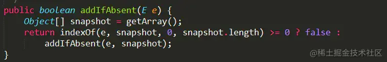 CopyOnWriteArrayList中的addIfAbsent方法:集合中没有指定元素则添加