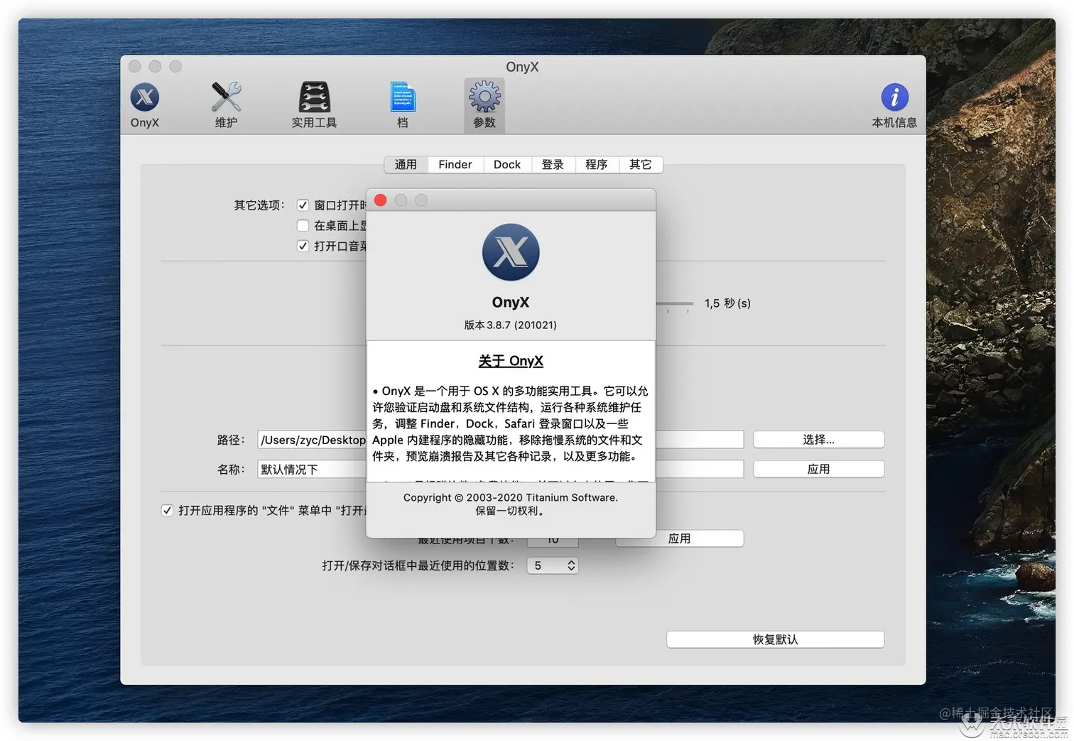 无论您是要重建数据库或索引,还是只是更改屏幕快照的默认位置或文件格式,都可以在OnyX中进行。在优化工具方面,OnyX可以清理系统文件和浏览器数据,重建Spotlight和Launch Services数据库,运行维护脚本并清理最近的项目列表。