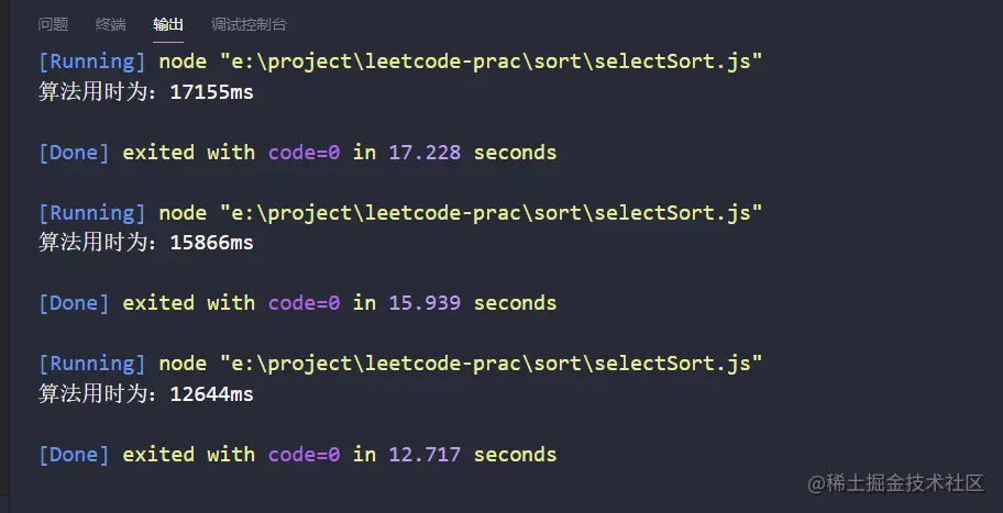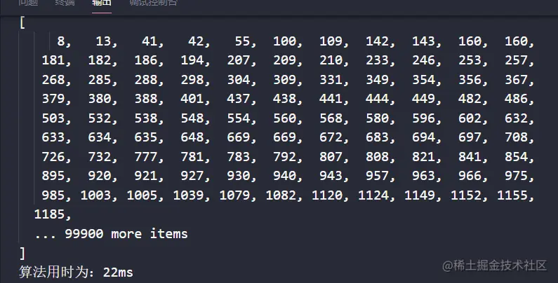 console.log(`算法用时为:${end - start}ms`);
