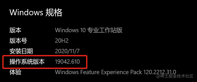 WSL2是微软在今年6月在18917预览版中发布的,各方面性能都有很大的提升,想尝鲜的同学可以升级Windows试一下,注意:WSL2只能在18917之后的版本中才有。我的系统版本如下(所以可以安装):