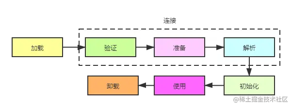 加载(Loading)阶段很简单,当程序执行到需要的类时,JVM就会通过类加载器 将其加载到内存中。接下来,我们先看下什么是类加载器,然后详细讲解整个类加载流程。(稍后再来)