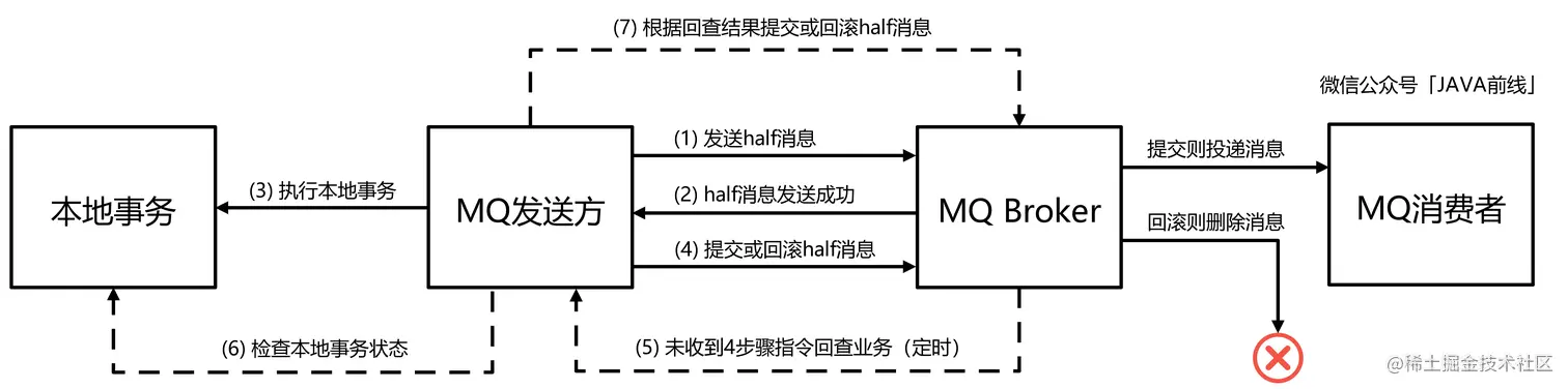 如果使用RocketMQ消息中间件,可以直接使用其事务消息机制,通过发送half消息、提交或回滚half消息、定时业务回查也可以实现最终一致性。