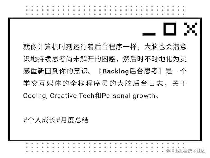 以及这里是我工作之外的个人成长/书单公众号【BackLog后台思考】
