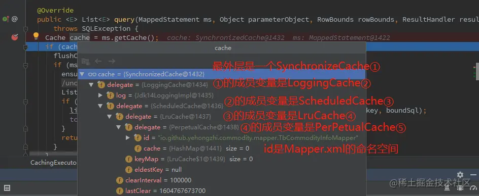 在执行查询的时候你就会看到真的是千层饼一样,一层一层的。看CachingExecutor类的query方法。