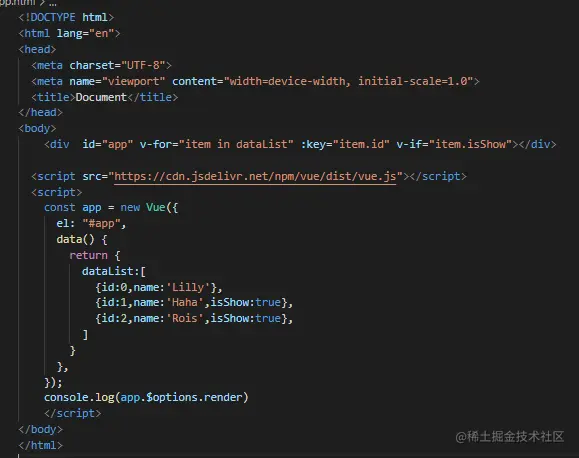这个例子就是将v-for与v-if在同一行代码标签中使用时,打印的render是先执行_l函数,那_l函数就是列表渲染的方法,然后在里列表函数方法里会循环着执行item.isShow这个条件,所以也就印证了,先执行的v-for后执行的v-if。