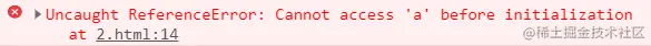 { console.log(a); let a = 10; // 报错 -- 初始化前无法访问“a”}