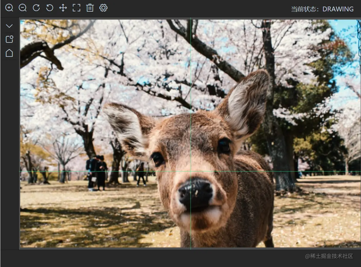 - 底部自定义:本质是一个插槽,可以方便用户添加自己的逻辑。如:加载图片、标注数据处理等。 显然,中间的绘制区是最为重要的部分,它内部又划分为两个部分: