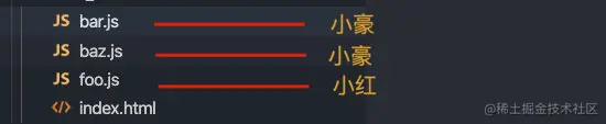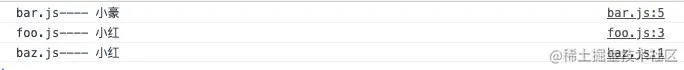 当我们看到这个结果,有的小伙伴可能就会惊讶,baz.js文件不是小豪写的么?为什么会输出小红的名字呢?