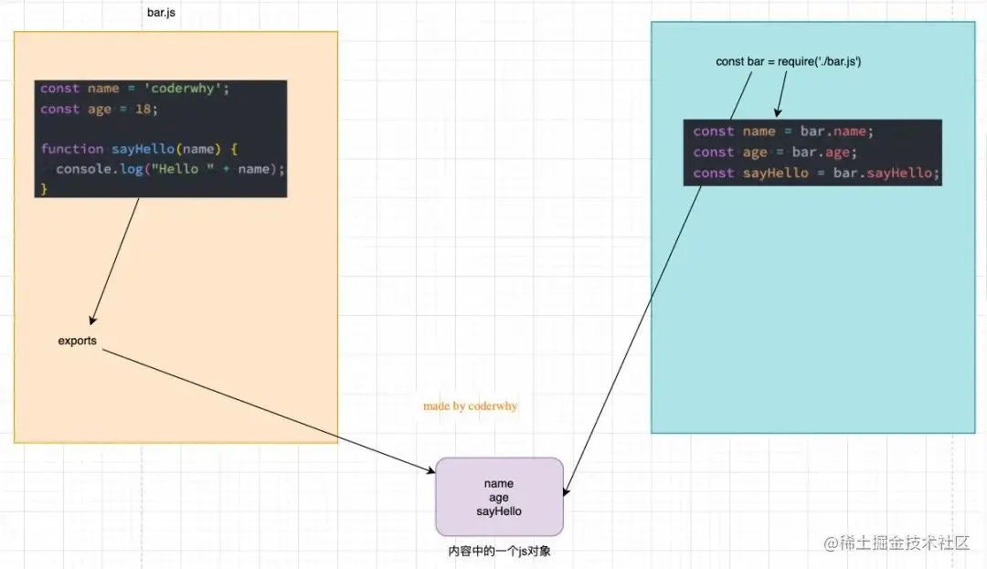 注意:真正导出的模块内容的核心其实是module.exports,只是为了实现CommonJS的规范,刚好module.exports对exports对象使用的是同一个引用而已