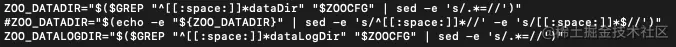 修改 zkServer文件,查找 ZOO_DATADIR 发现有两个同名变量,注释掉第二个。