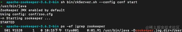➜ bin sh zkServer.sh --config ../conf start/usr/bin/javaZooKeeper JMX enabled by defaultUsing config: ../conf/zoo.cfgmkdir: illegal option -- eusage: mkdir [-pv] [-m mode] directory ...-n Starting zookeeper ... -