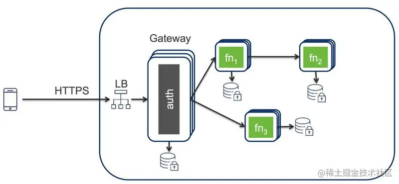 用户请求的身份验证和权限批准都由独立的gateway服务来保障