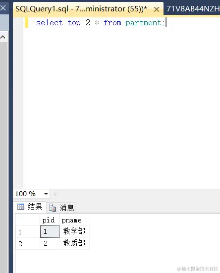select top 2 * from partment; -