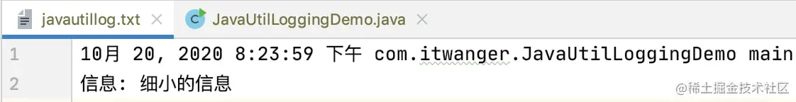 程序运行后会在 target 目录下生成一个名叫 javautillog.txt 的文件,内容如下所示: