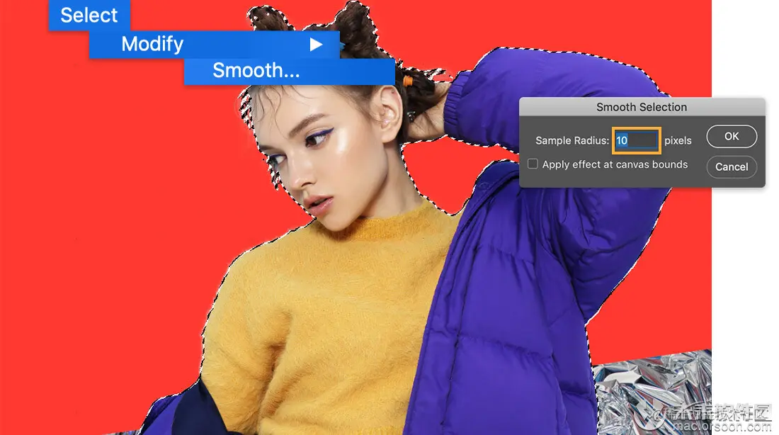选择“平滑”命令并将“采样半径”设置为10像素。