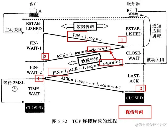 - 服务器端通知应用程序关闭网络连接,应用程序关闭后通知服务器。服务器端发送一个 FIN 给客户端。