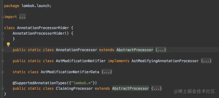 实现方式:继承AbstractProcessor接口.并实现process方法.例如:lombok可以在编译过程中添加getter,setter,tostring到语法树当.如下(lombok具体细节后续研究)