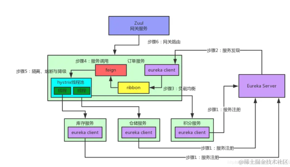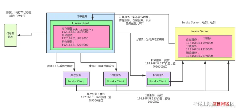 通过上面的Eureka,现在订单服务确实知道库存服务、积分服务、仓储服务在哪了