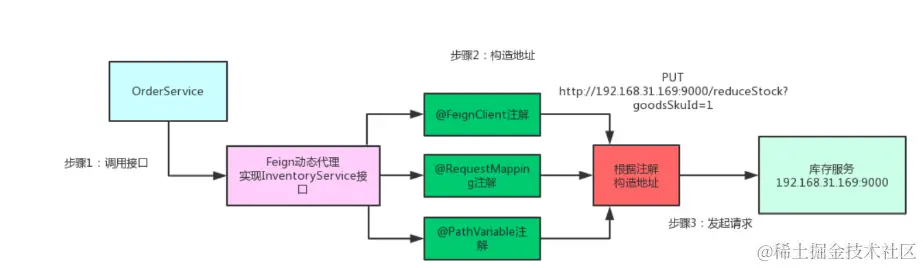Feign的动态代理会根据你在接口上的@RequestMapping等注解,来动态构造出你要请求的服务的地址