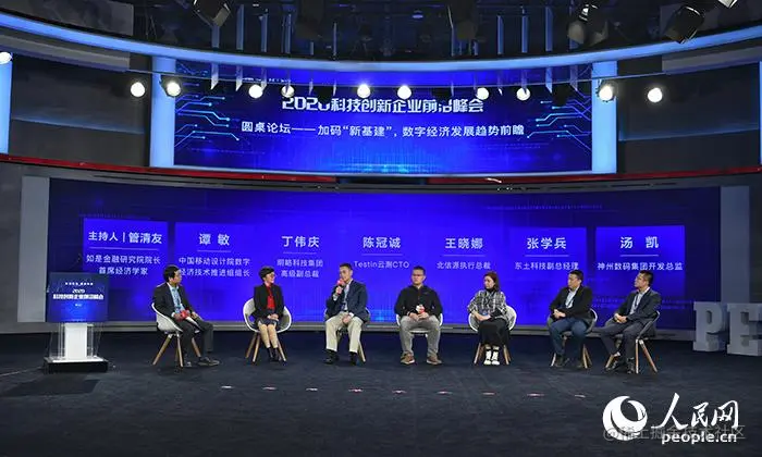 峰会上进行了以“加码‘新基建’,数字经济发展趋势前瞻”为主题的圆桌论坛,如是金融研究院院长、首席经济学家管清友、中国移动设计院数字经济技术推进组组长谭敏、明略科技集团高级副总裁丁伟庆、北信源执行总裁王晓娜、东土科技副总经理张学兵、Testin云测CTO陈冠诚、神州数码集团开发总监汤凯等企业代表与专家学者,一同探讨在新基建、5G以及人工智能时代科技与经济发展面临的挑战和机遇。
