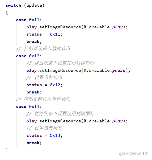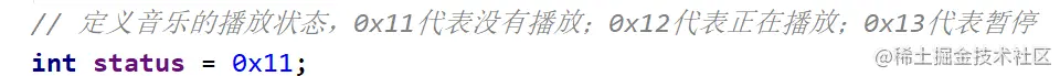 在这里,定义一个变量status表示音乐文件的播放状态: