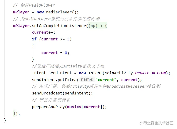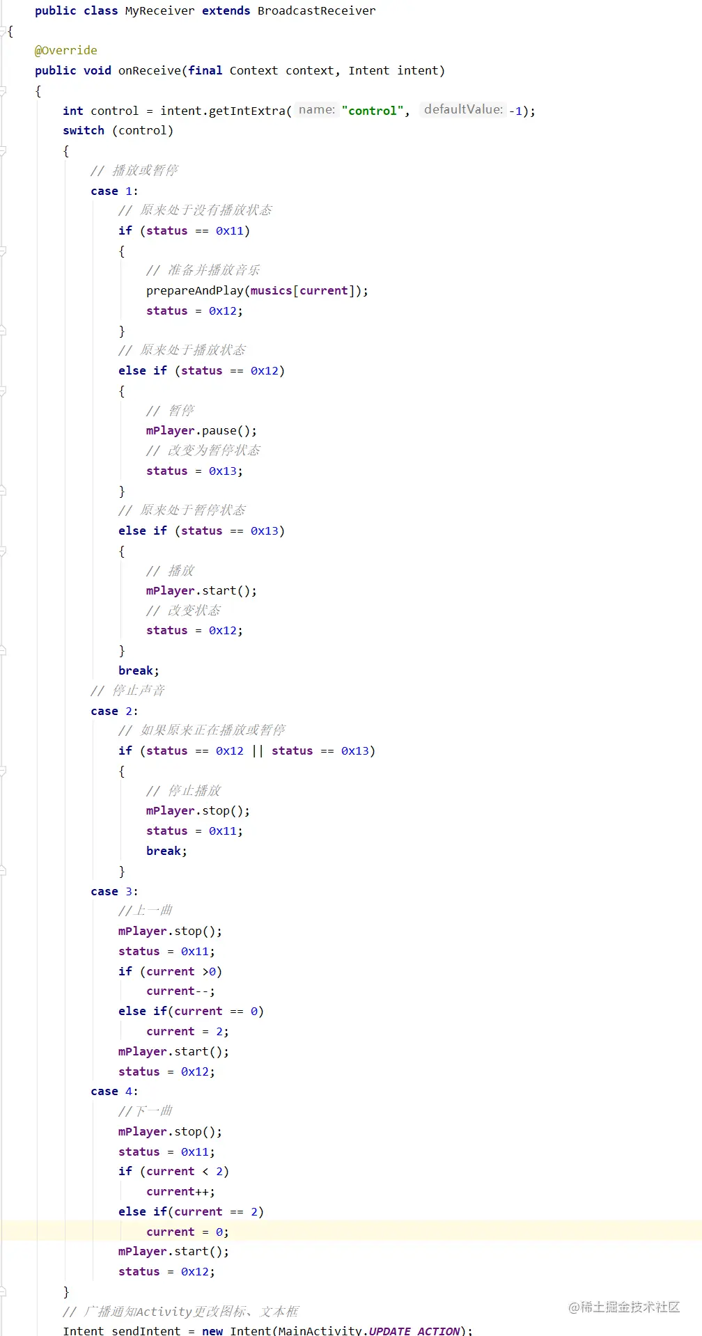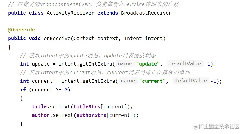 这两个广播变量也需要得到当前音乐文件的播放状态以便显示当前播放的信息。