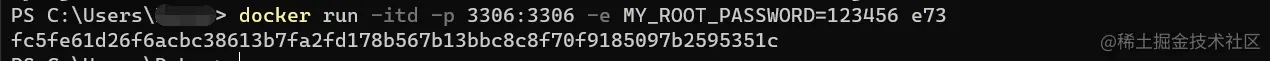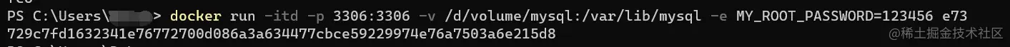 docker run -itd -p 主机端口:3306 -e MYSQL_ROOT_PASSWORD= 密码 镜像id
