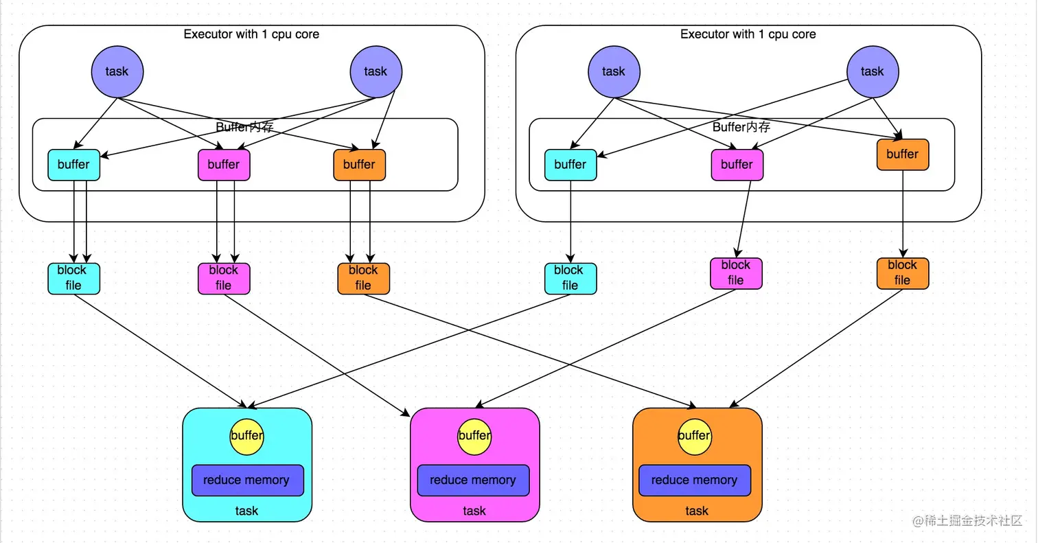总共磁盘文件个数:m * n (上游的task数量 * 下游的task数量) -