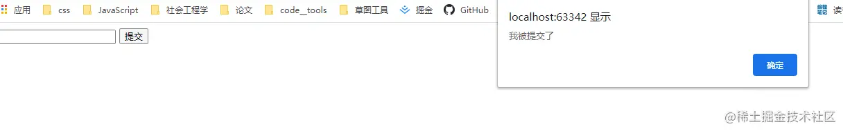 <form action="./index.html" method="get" autocomplete="on" id="form" onsubmit="alert('我被提交了')">